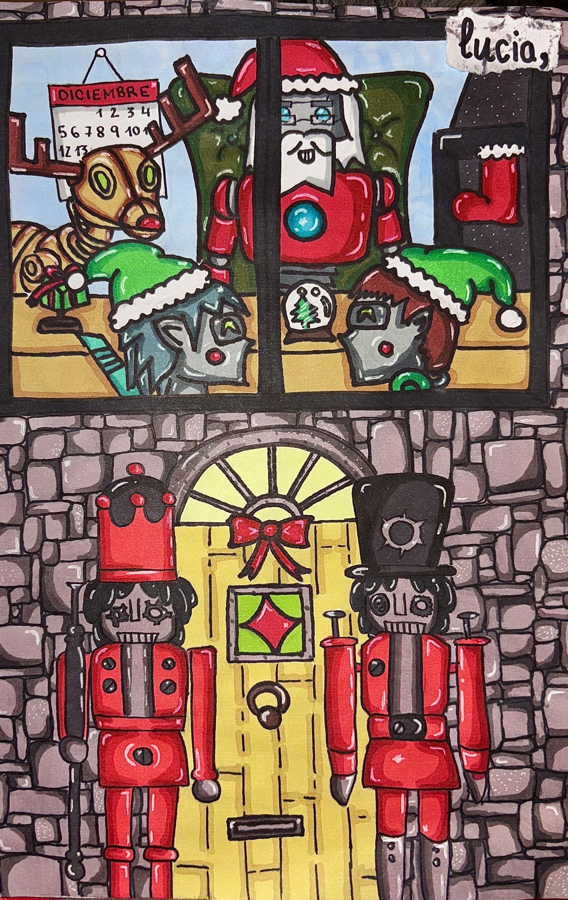 Este año, la propuesta inspiró ilustraciones llenas de creatividad, desde Santas androides hasta paisajes nevados intervenidos por circuitos y robots festivos.